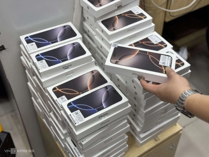 Cửa hàng xếp chồng iPhone 16 series chuẩn bị giao cho người mua vào ngày mở bán năm 2024. Ảnh: Lưu Quý